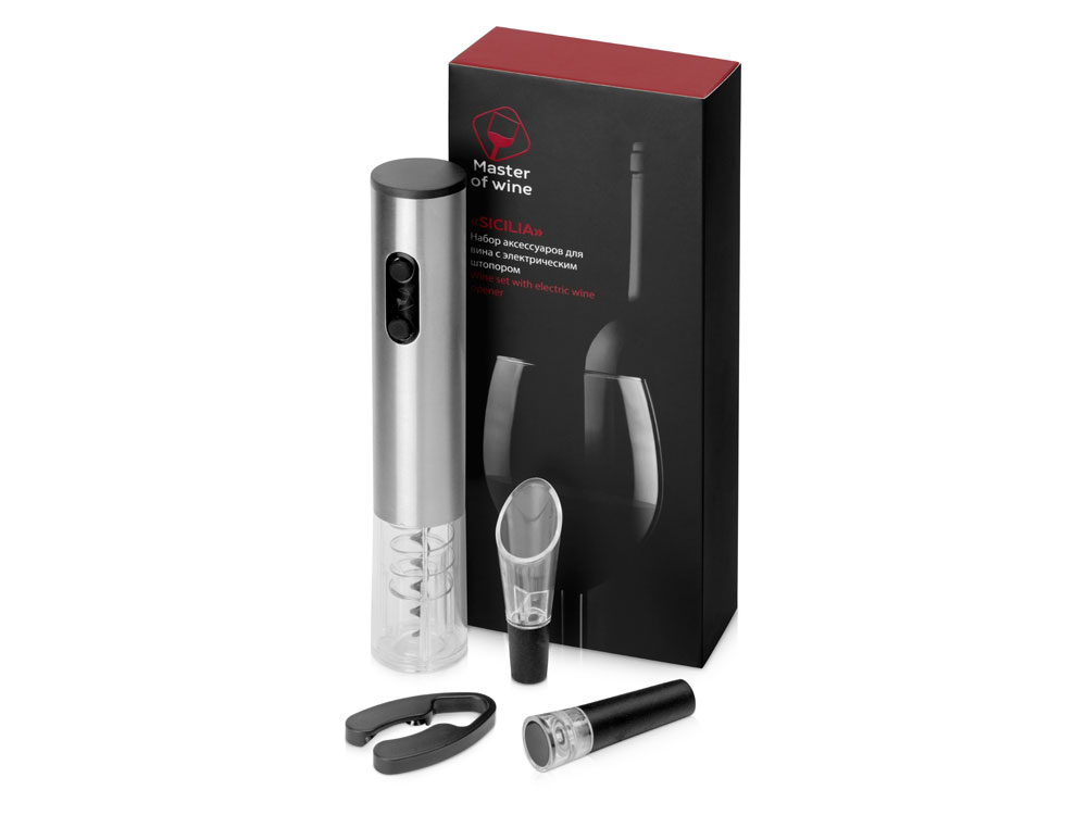 Набор винных аксессуаров с электрическим штопором из стали, на батарейках (P)