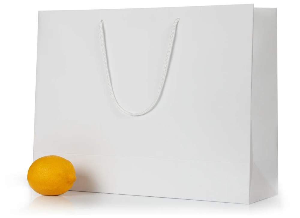 Готовые белые бумажные пакеты со склада. Купить пакет бумажный белый однотонный под нанесение можно сразу в нашем интернет магазине. Можно купить пакеты под нанесение логотипа, а можно заказать нанесение у нас.
