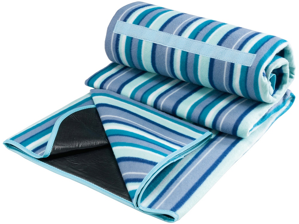 Водонепроницаемый плед для пикника Riviera. Плед для пикника с влагонепроницаемой подкладкой и удобной ручкой. Размер пледа 145 х 130 см. Полиэстеровый флис. Термотрансфер (1 цвет (цветные изделия)) на данный товар осуществляется бесплатно. Оплачивается только настройка оборудования в размере 10000 рублей на весь тираж.