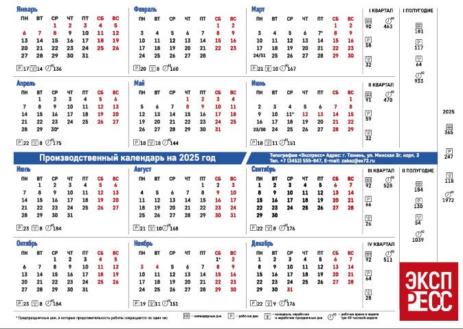 Производственный календарь (иногда сокращенно - ПК) на 2025 год с выходными и праздничными днями является важным рабочим материалом российских кадровиков и бухгалтеров. Каждый год мы готовим для вас производственный календарь удобный для работы. Наша кадровая служба и бухгалтерия выступают в роли приемщиков работы наших дизайнеров. Поэтому можете быть уверены для вас производственный календарь на 2025 год сделан как для себя.